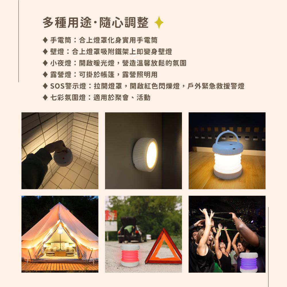 燈光模式:暖光-氛圍燈-藍紅閃爍-SOS紅色閃爍警示