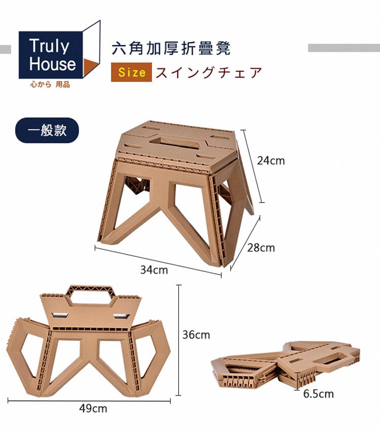 【Truly House】免安裝輕便高承重 六角加厚折疊凳(加高款)/露營椅/摺疊椅/釣魚椅/排隊神器(三色任選)