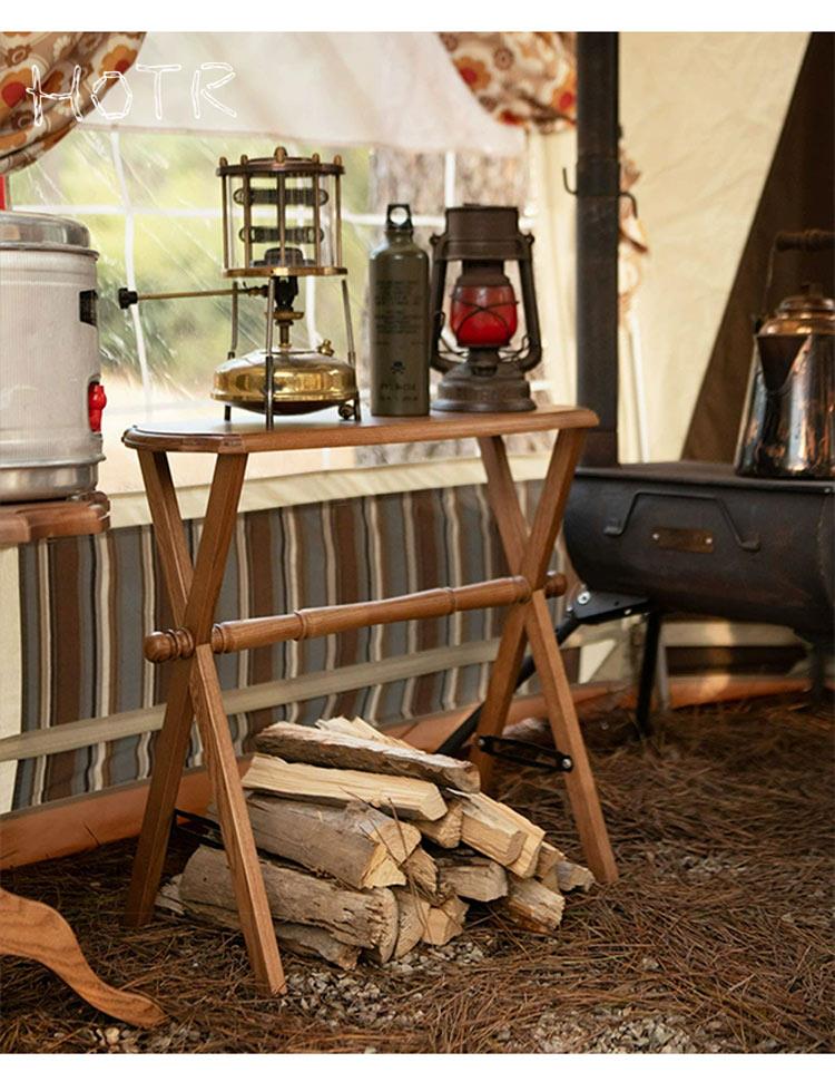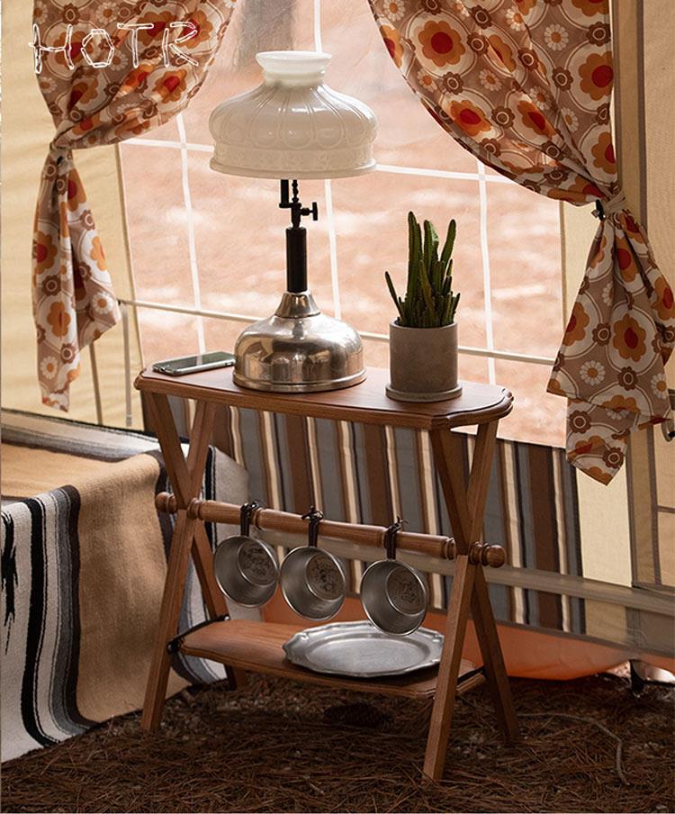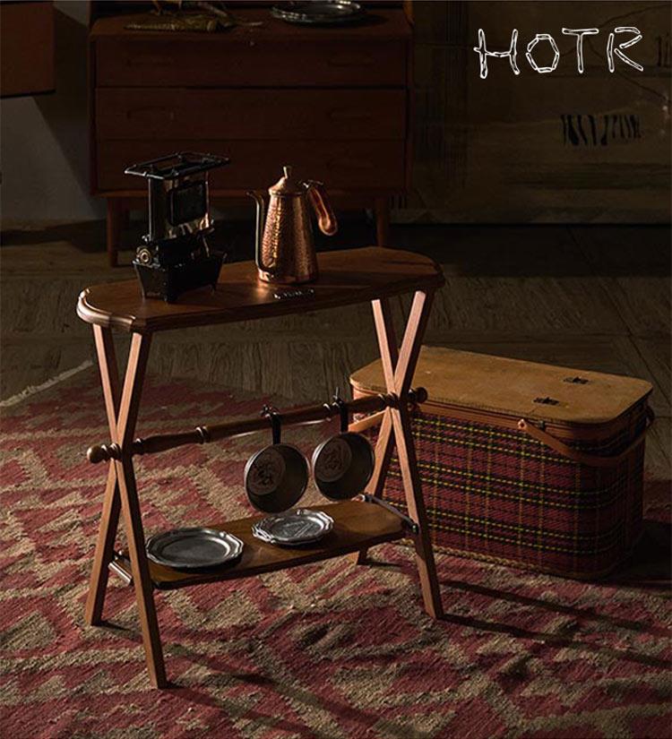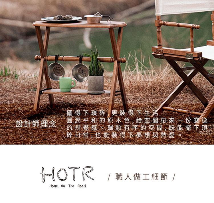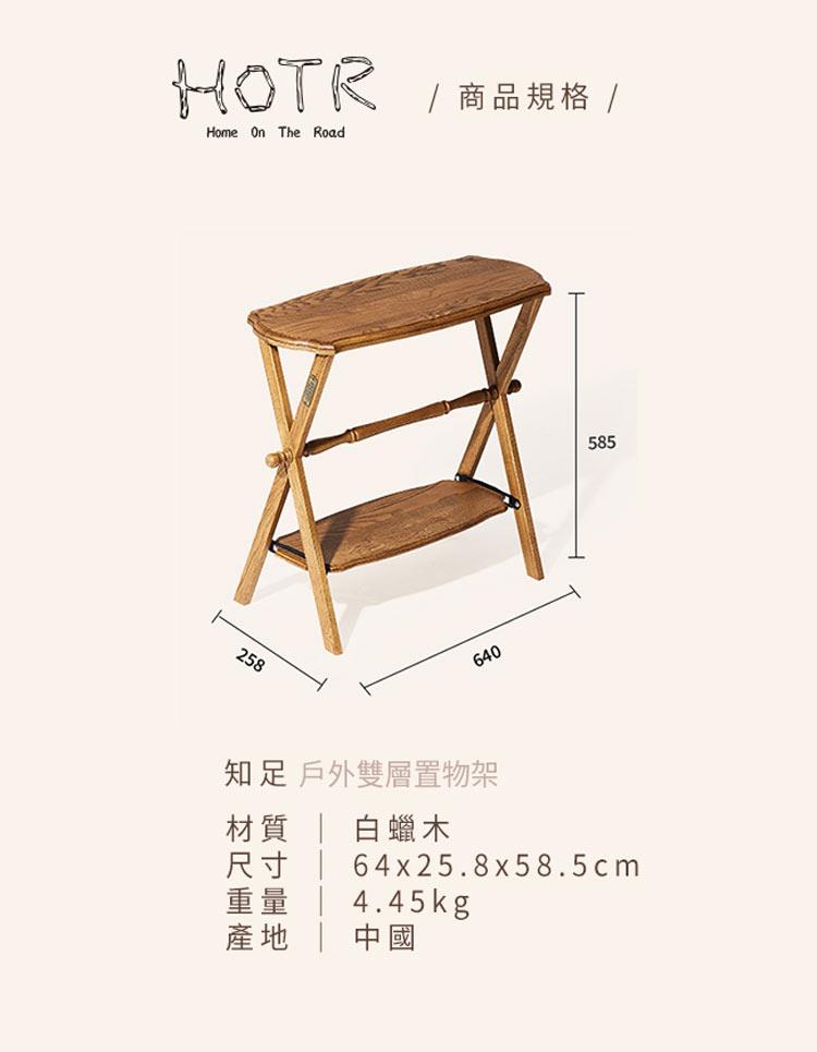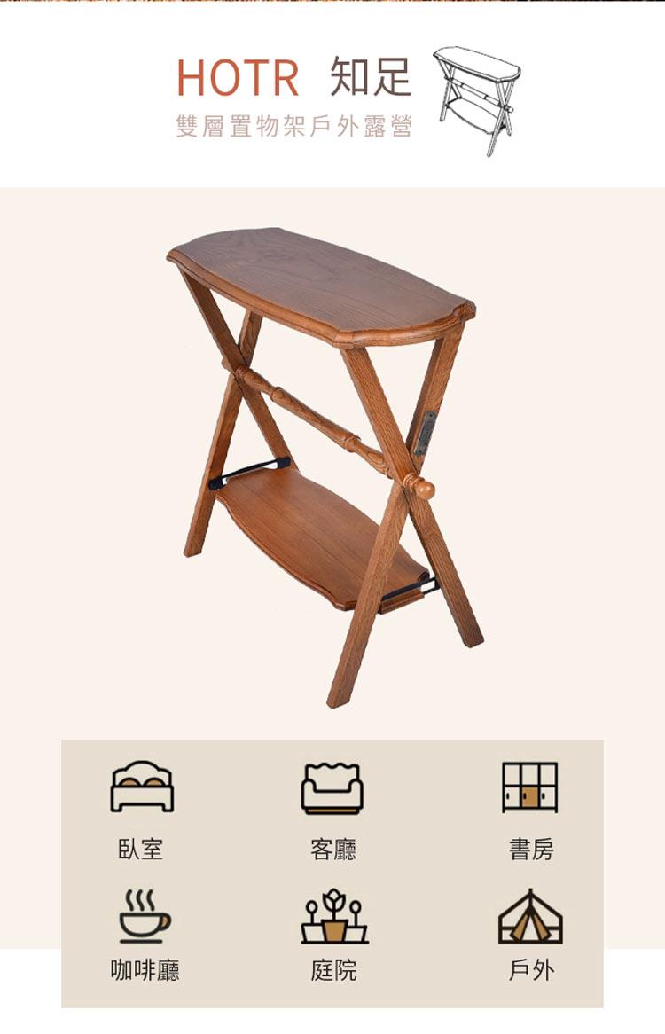 【HOTR】知足 戶外雙層置物架/戶外露營咖啡桌/多功能露營支架/實木/防水/收納