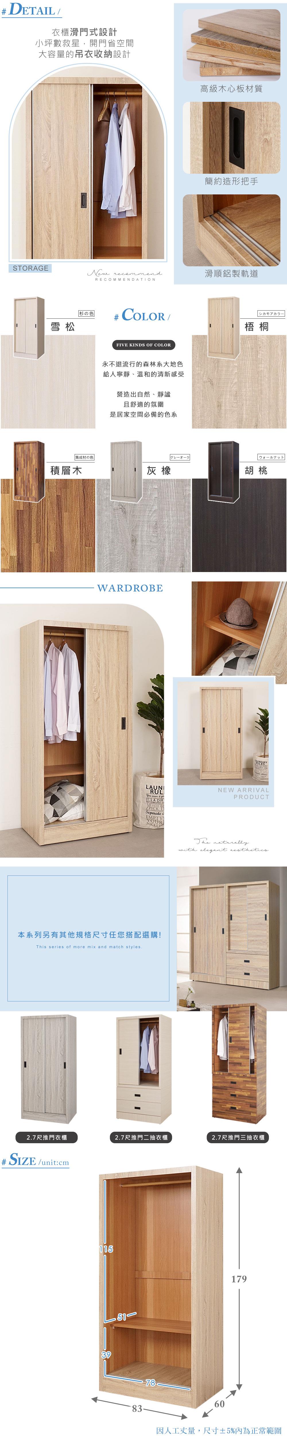 YoStyle 普路斯2.7尺推門衣櫃(5色可選)
