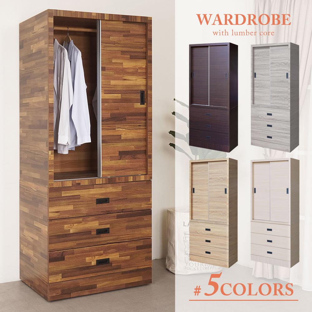 YoStyle 普路斯2.7尺推門三抽衣櫃(5色可選)