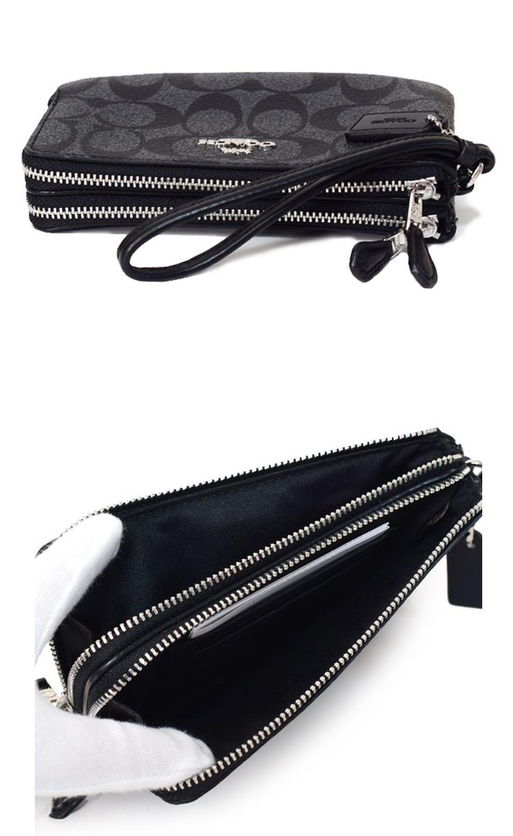COACH 質感皮革雙層拉鍊手掛包/手拿包