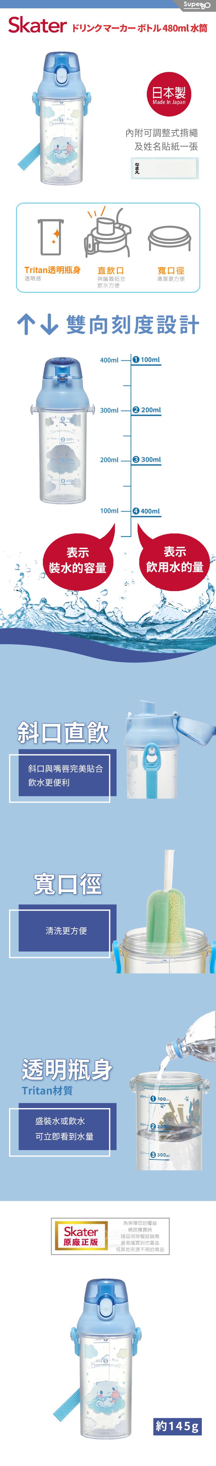 Skater定量飲水壺 (480ml) 大耳狗