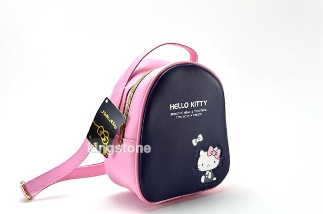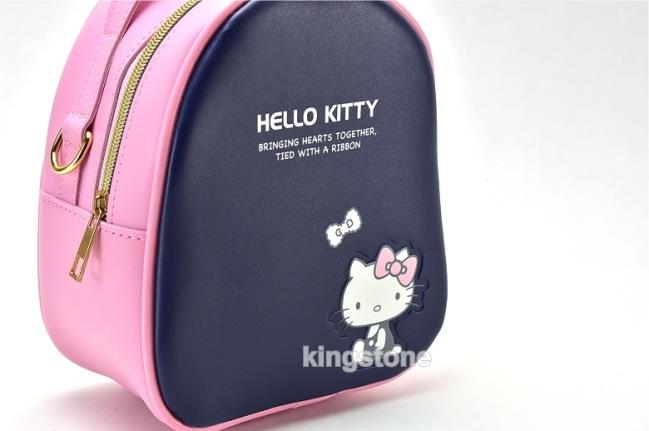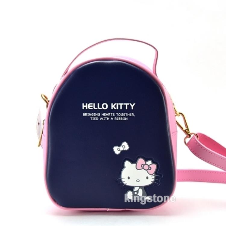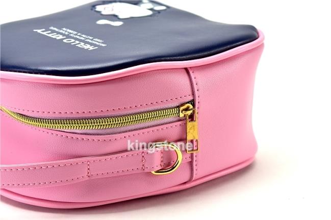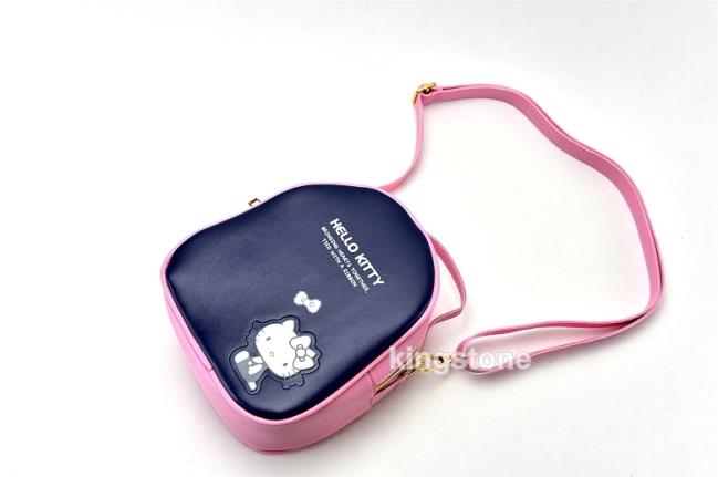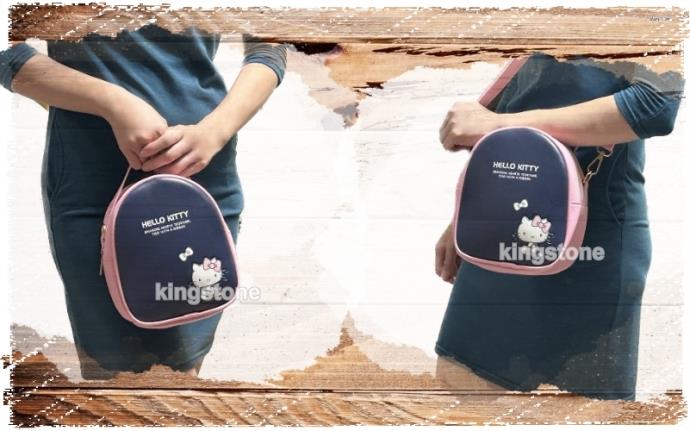 粉色包包圓弧造型設計,並有可愛的KITTY圖案,可手提也可肩背包兩種使用方式,方便您根據不同場合和喜好自由搭配,包包金色拉鍊設計質感更提升.