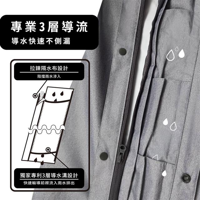 【TDN】 丹寧導流前開雨衣速乾防水連身雨衣(反光條超防水雨衣附收納袋EU4500)