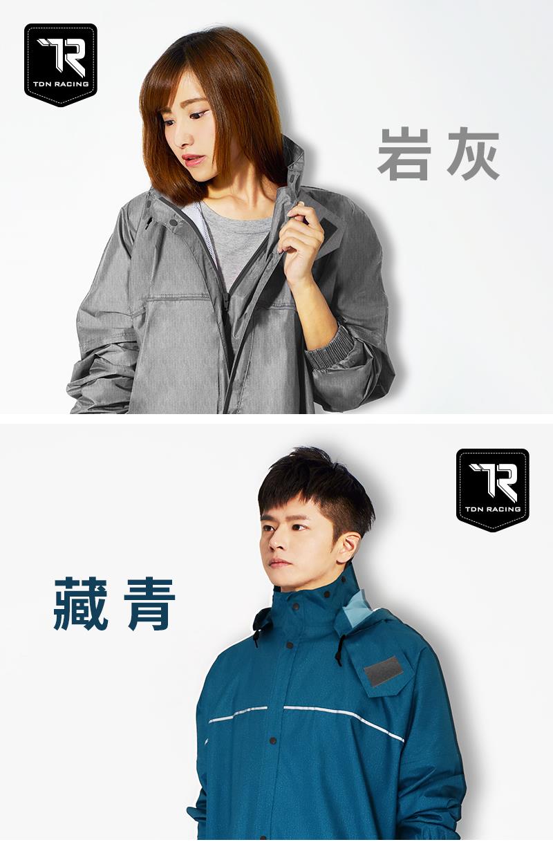 【TDN】 丹寧導流前開雨衣速乾防水連身雨衣(反光條超防水雨衣附收納袋EU4500)