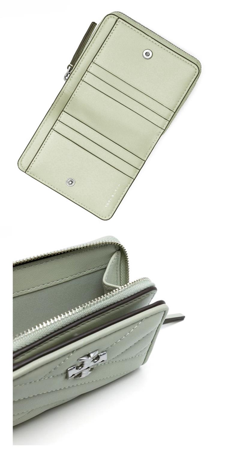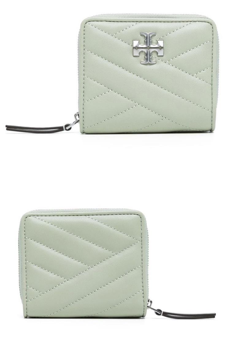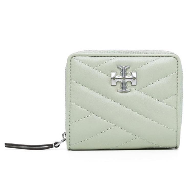 Tory burch 斜紋皮革零錢短夾-淺綠