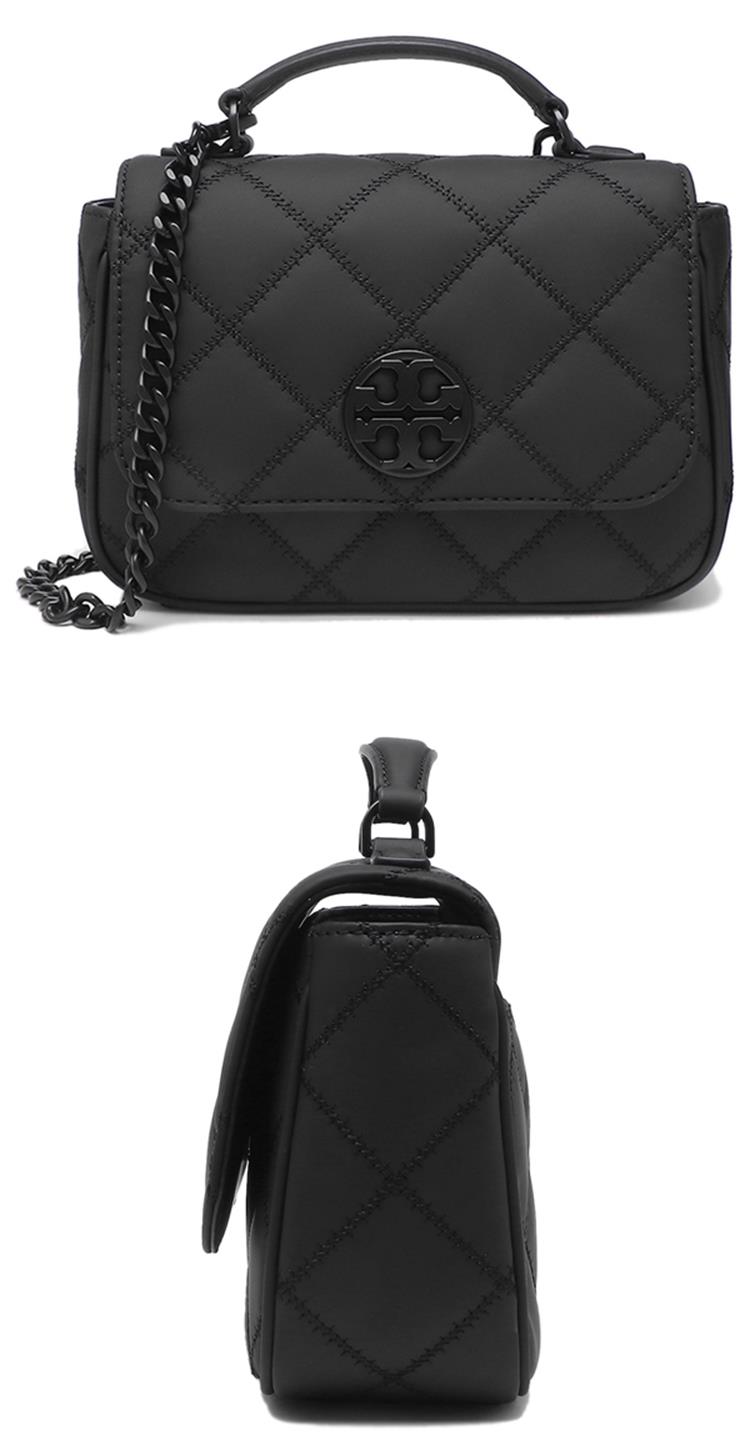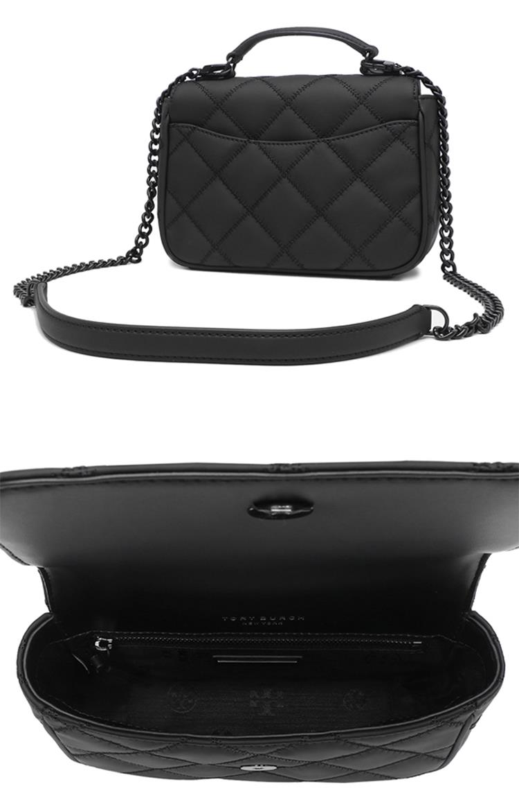 Tory burch 菱格紋皮革翻蓋斜背包-霧黑