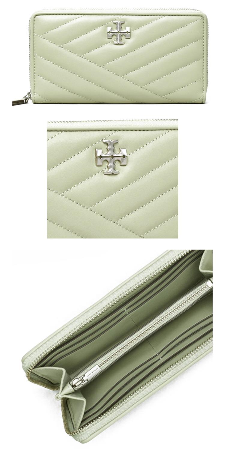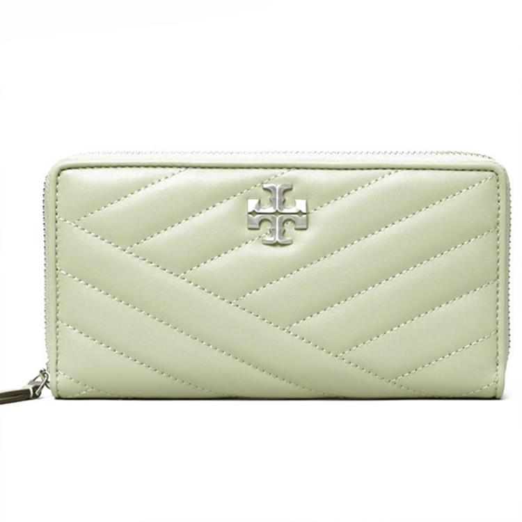 Tory burch 斜紋皮革拉鍊長夾-淺綠