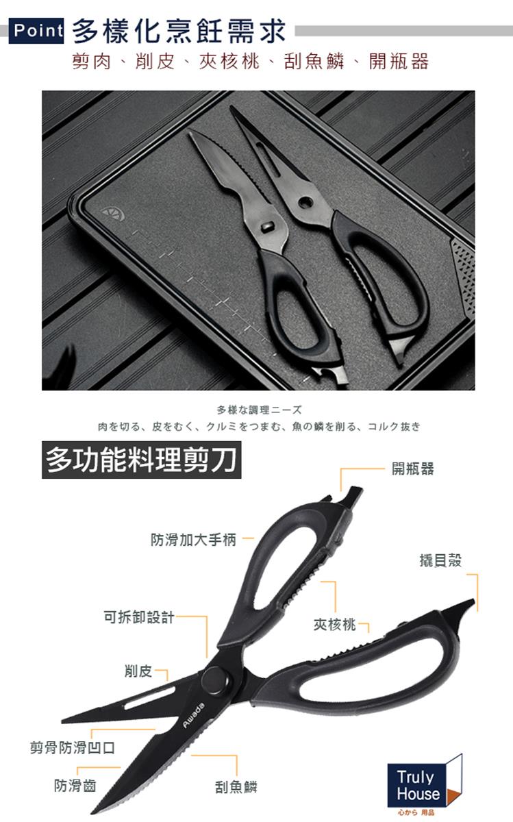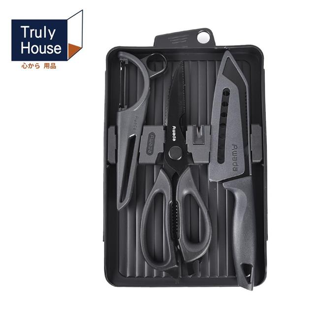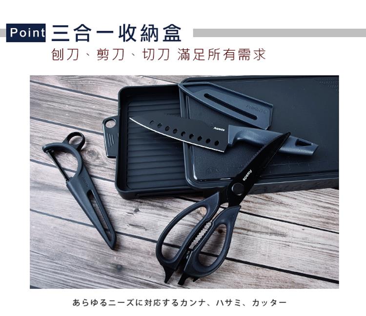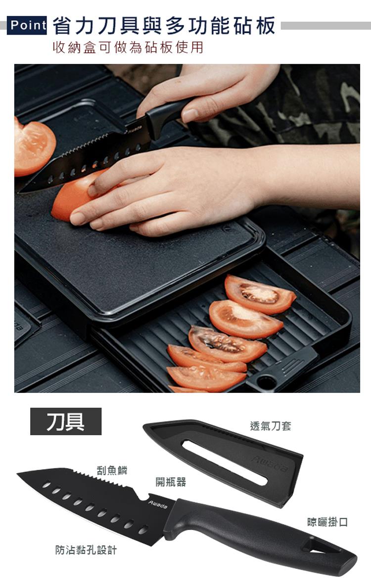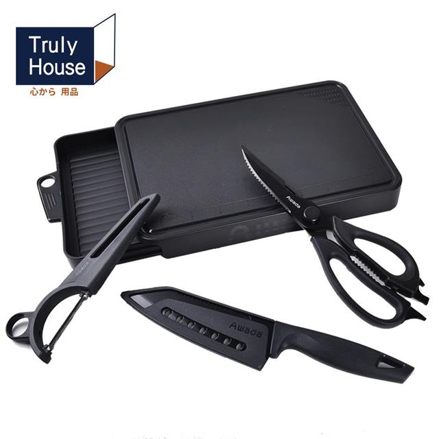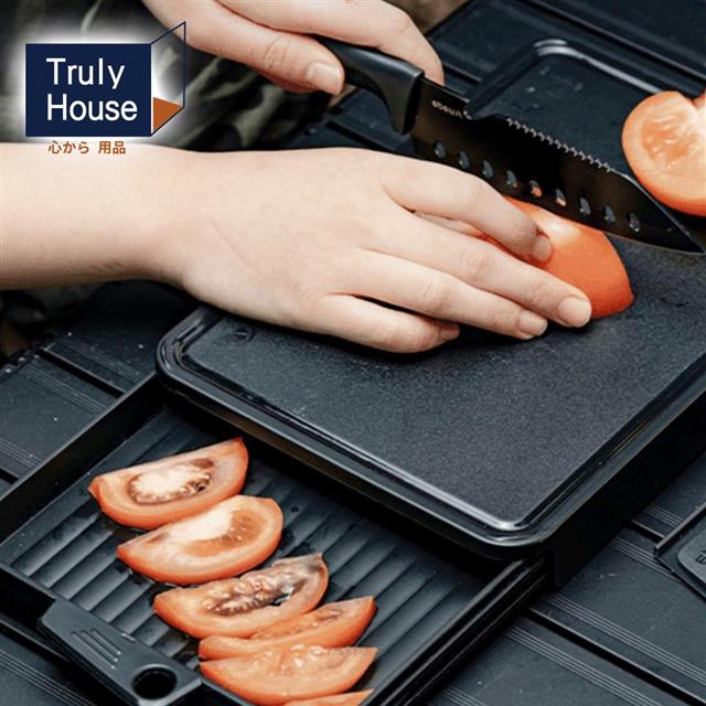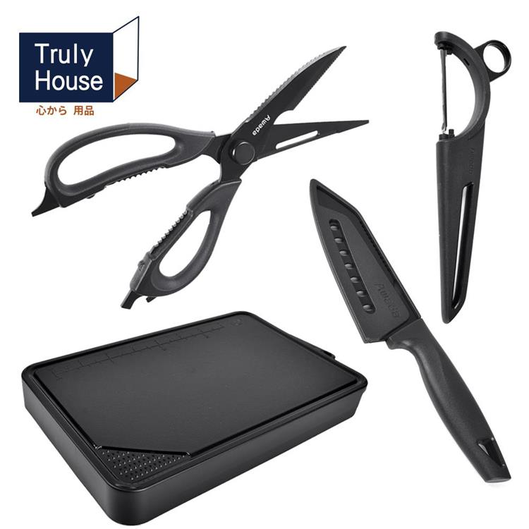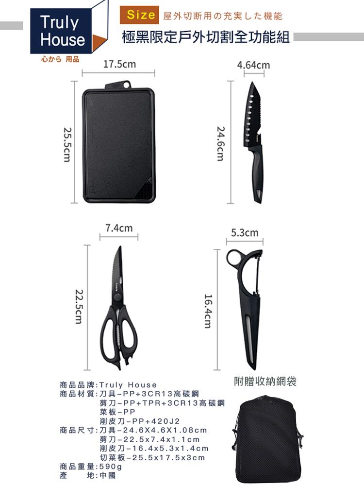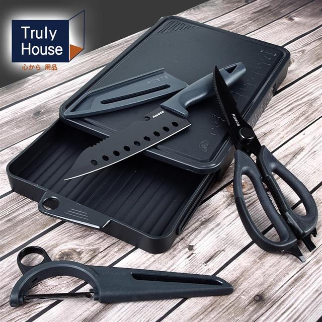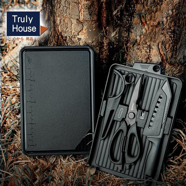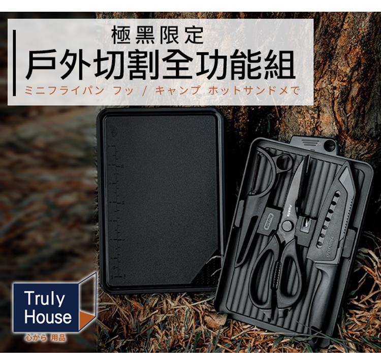 【Truly House】極黑限定 戶外切割全功能組/菜刀/剪刀/削皮刀/切菜板/砧板/露營/野炊