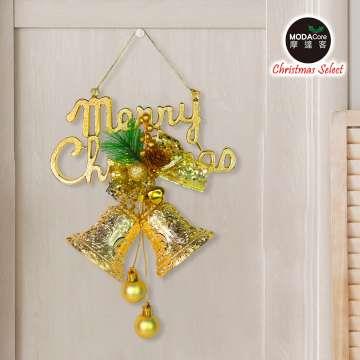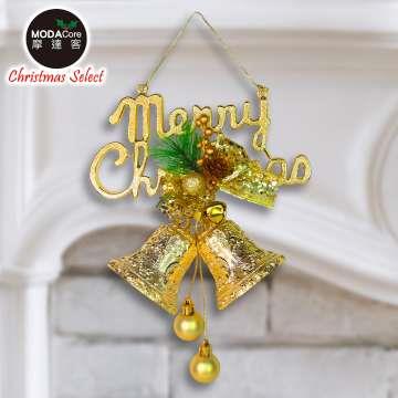 摩達客 台灣製 精緻8吋聖誕快樂英文字牌雙鐘吊飾(歐美外銷人氣品)