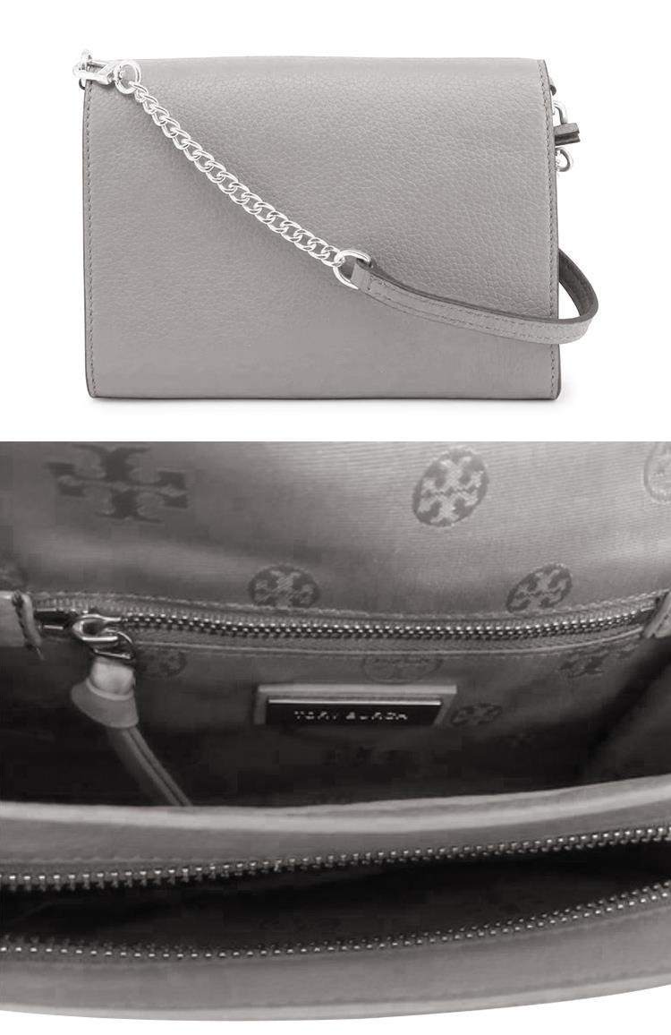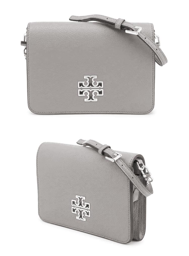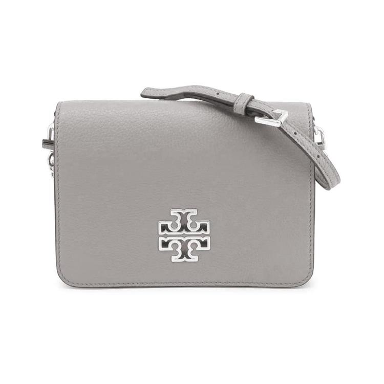 TORY BURCH 雙T-LOGO皮革斜背包-灰