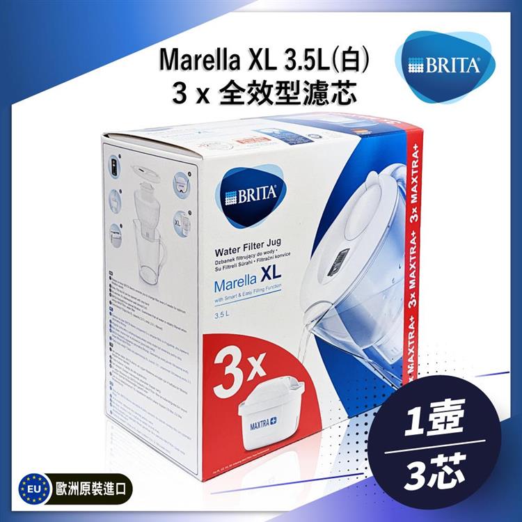【1壺3芯限定組】德國原裝BRITA Marella XL馬利拉濾水壺3.5L(內含3入濾芯)
