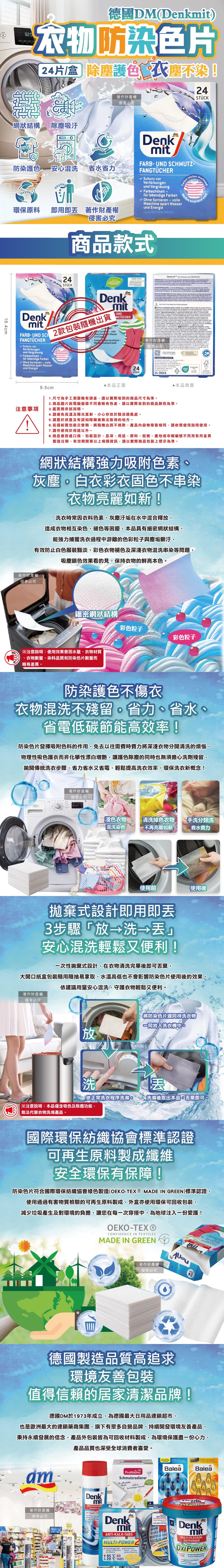 德國DM(Denkmit)-強效護色除塵防串染拋棄式洗衣防染色片24片/盒(白衣彩衣皆適用,深淺衣物混洗,網狀結構吸色紙,防染魔布,防退色巾)