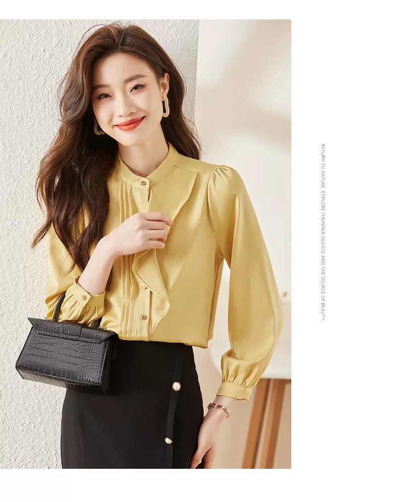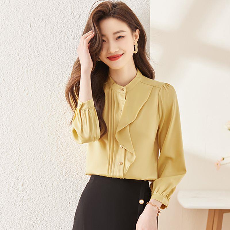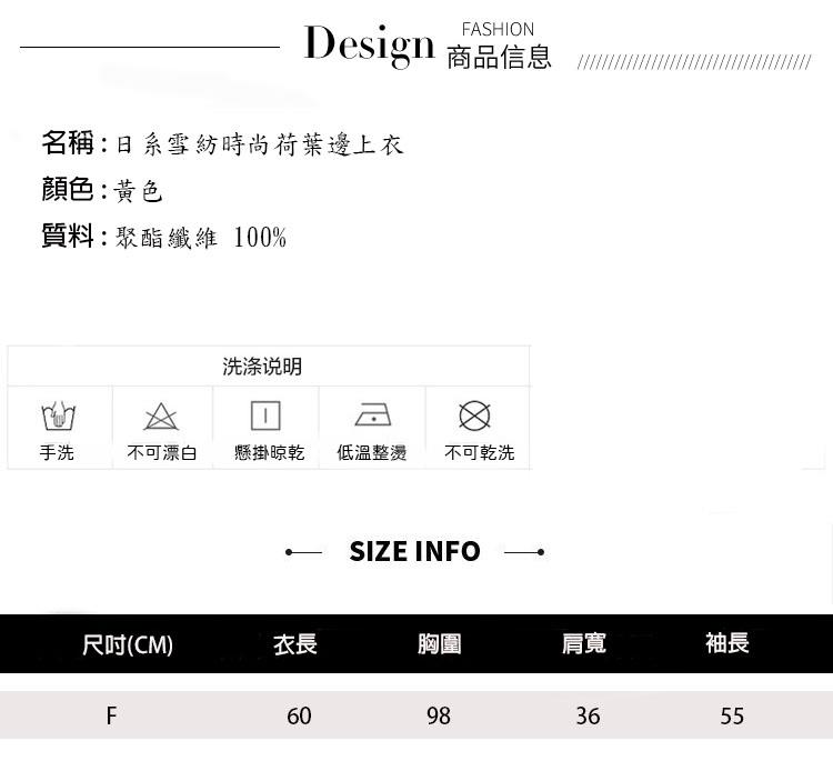 BJ COLLECTION 日系雪紡時尚荷葉邊上衣 BJC30082黃色FREE
