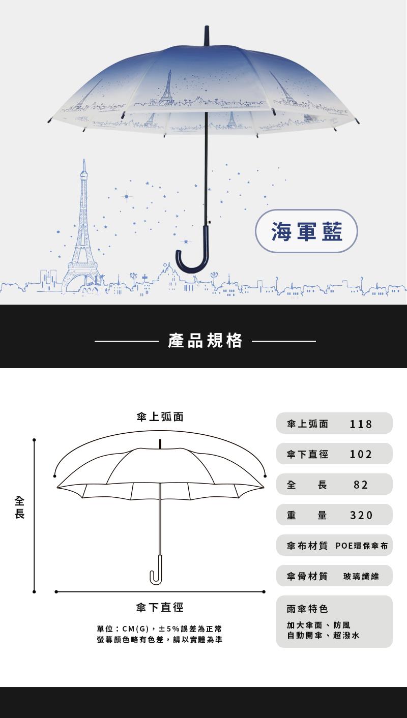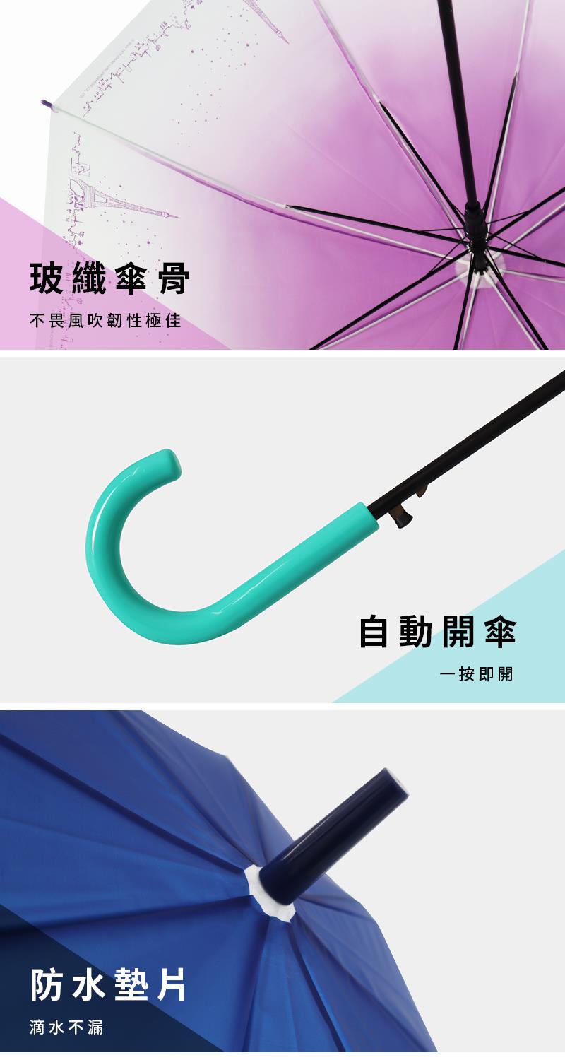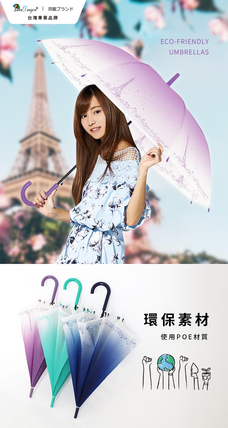 【雙龍牌】網美必備~巴黎文青環保自動傘 半透明傘果凍傘(加大傘面防風雨傘直立傘)A0557P