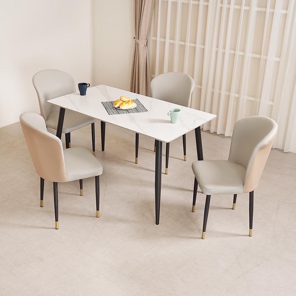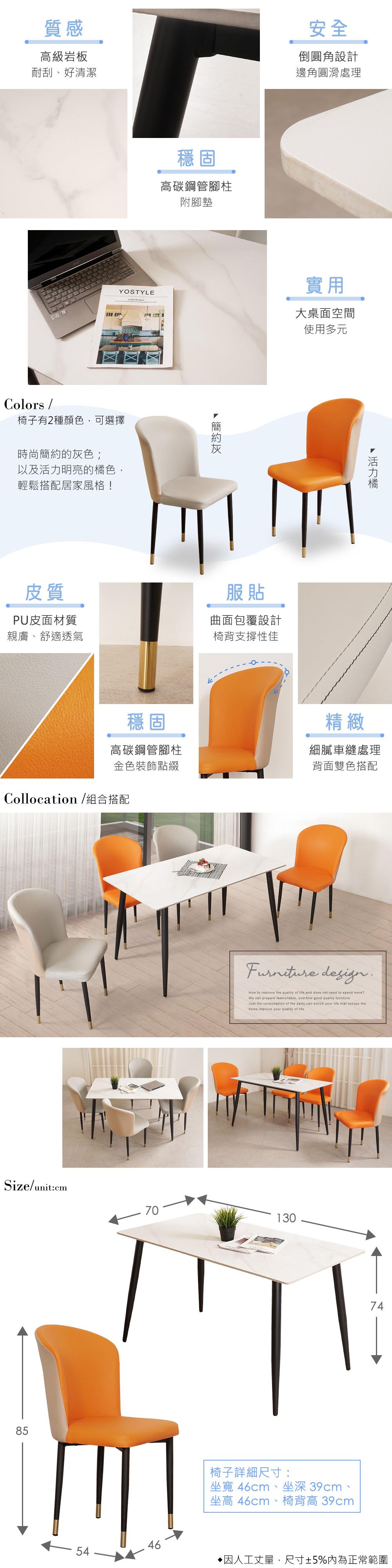 YoStyle 貝曼岩板餐桌椅組(一桌四椅)-四橘椅