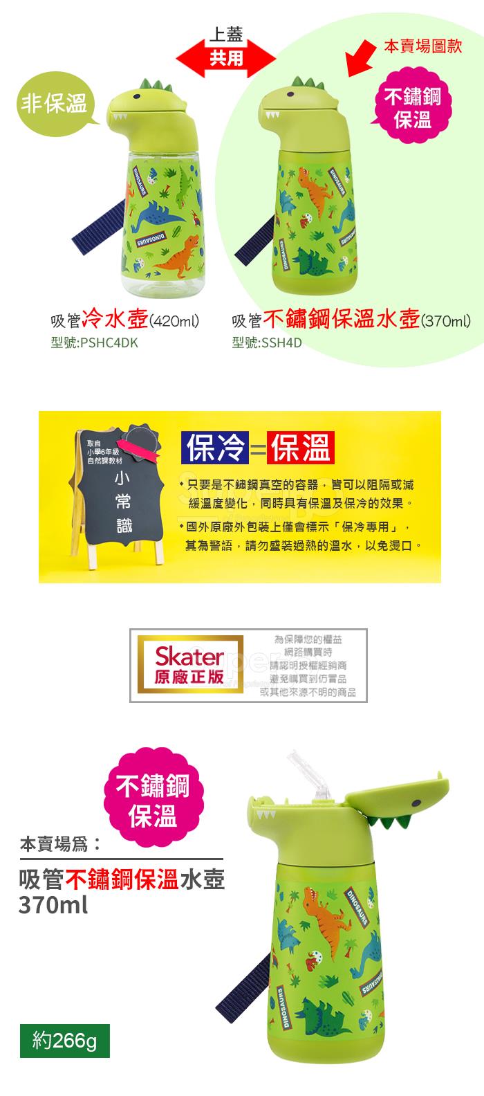 Skater 吸管不鏽鋼保溫水壺(370ml)綠恐龍