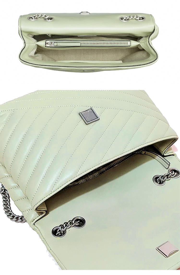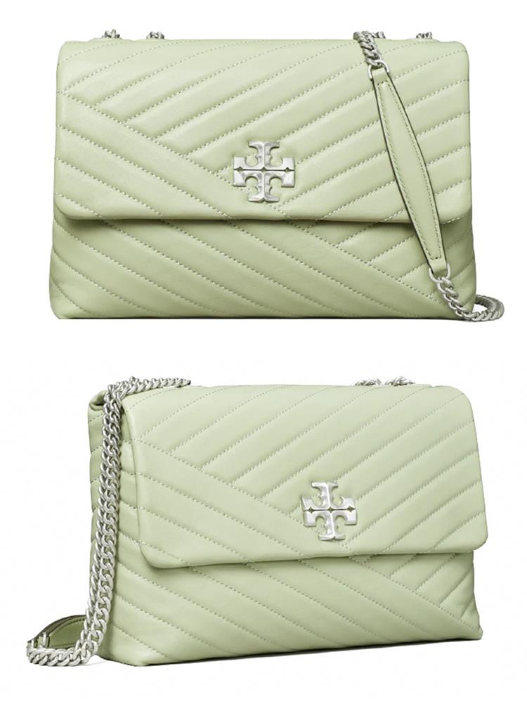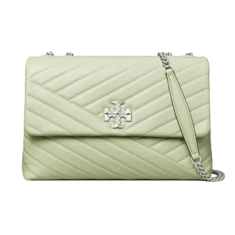 Tory burch 縫線皮革翻蓋斜背鍊包-淺綠松霜