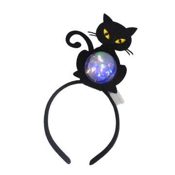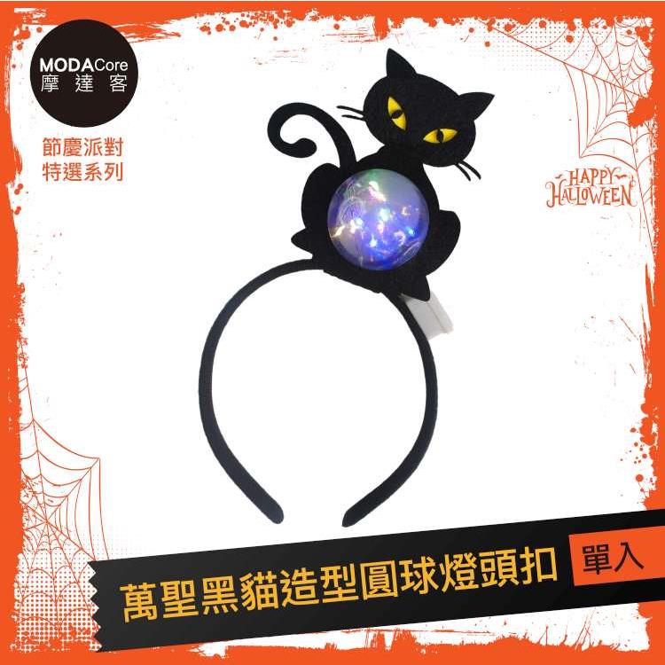 摩達客★萬聖派對頭飾★萬聖黑貓造型圓球燈頭扣