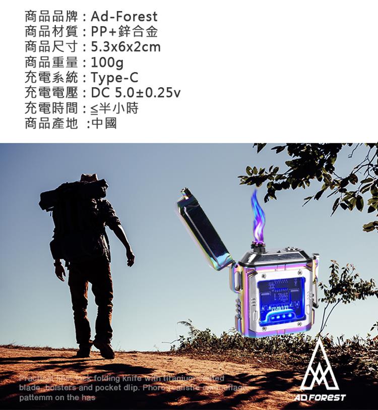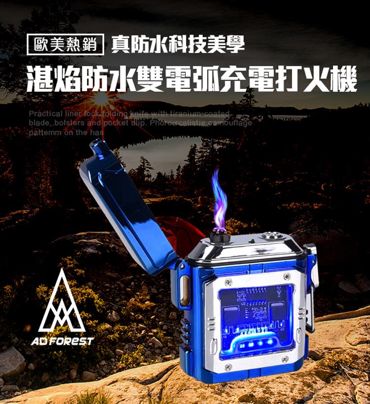 【Ad-Forest】野外求生必備 湛焰防水雙電弧充電打火機/打火機/生火/戶外/野炊/露營(兩色任選)