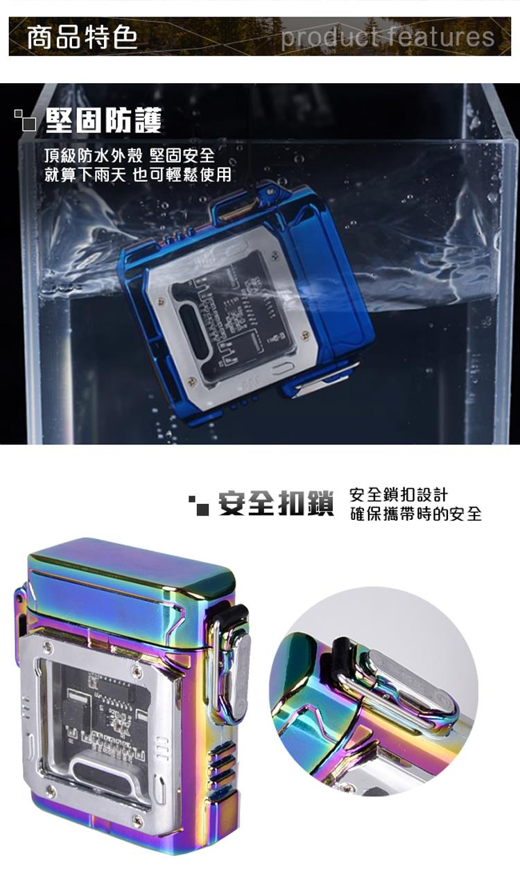 超亮LED設計,頂級雙電弧火焰,安全鎖扣設計