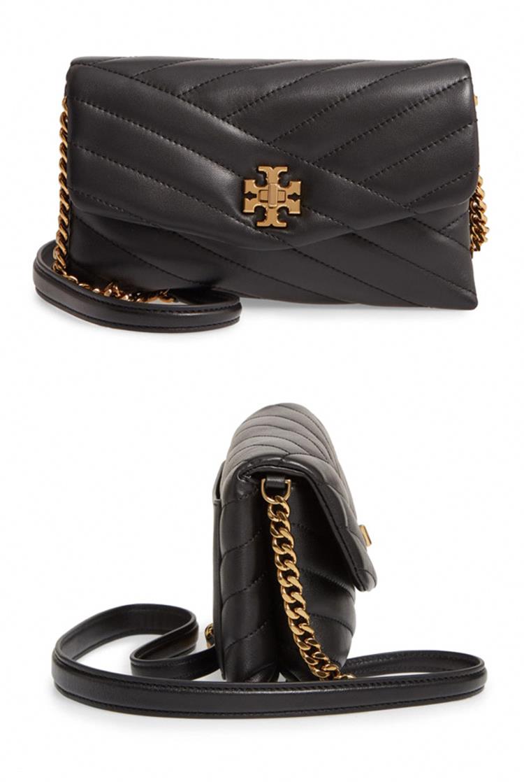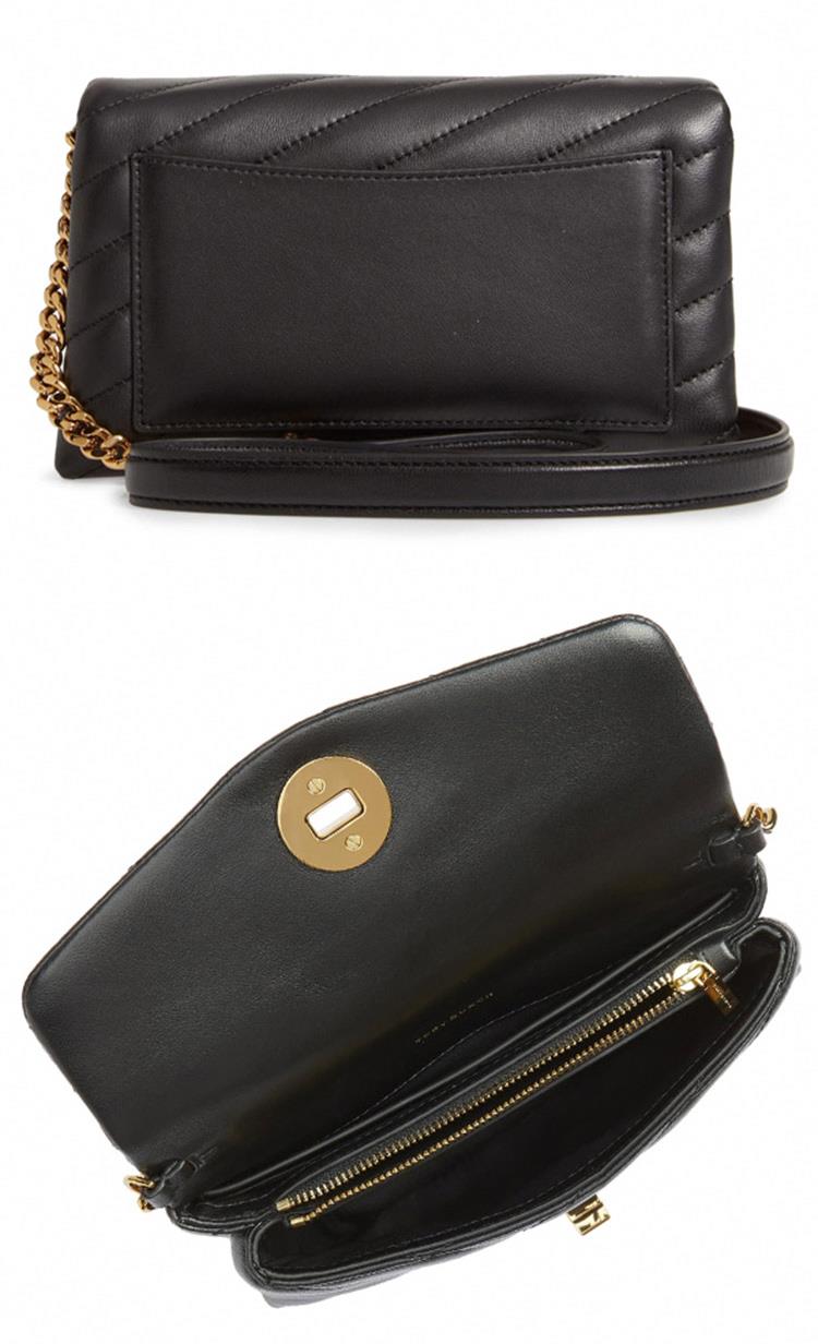 TORY BURCH 縫線斜紋皮革斜背鍊包-黑色