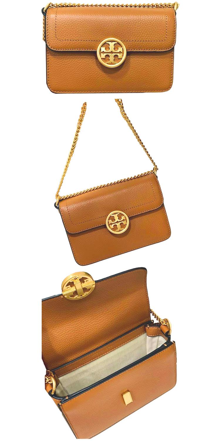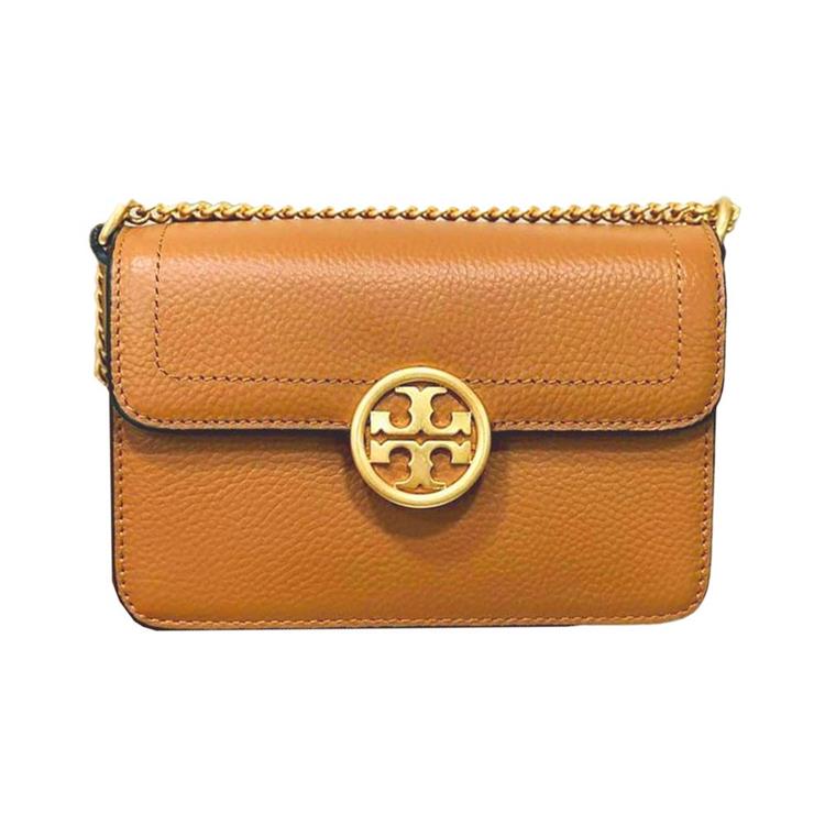 TORY BURCH 翻蓋皮革斜背鍊包-焦糖