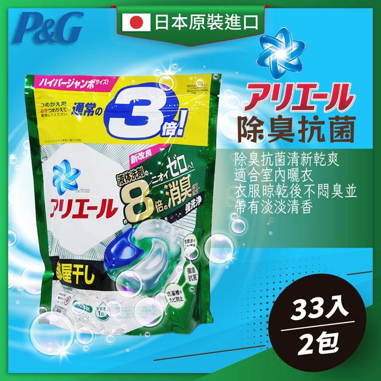 日本P&G Ariel 新款3.3倍洗衣膠球(33顆/袋)(綠)-2袋組
