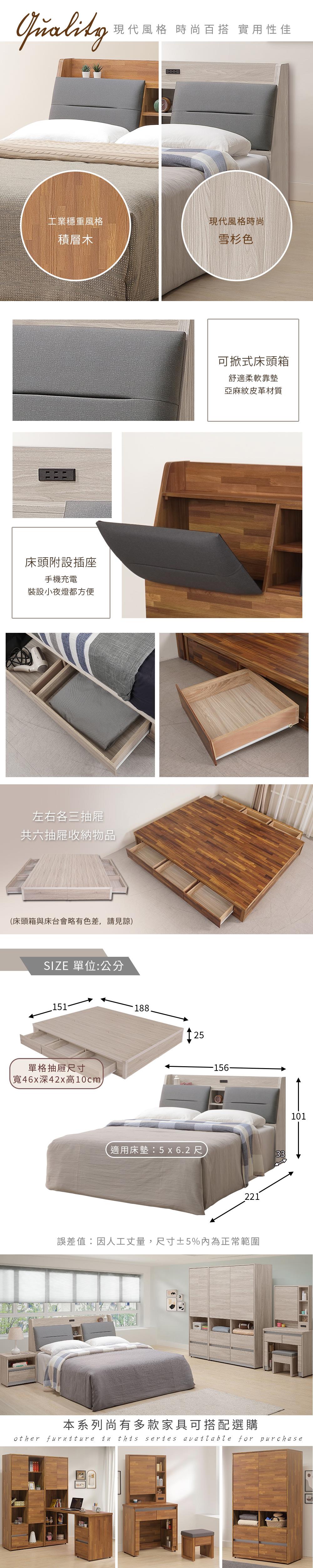 YoStyle 愛瑪附插座抽屜床組-雙人5尺(2色)