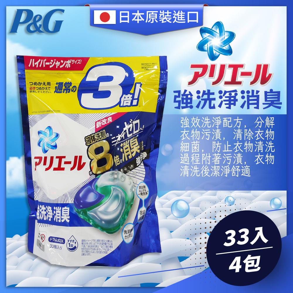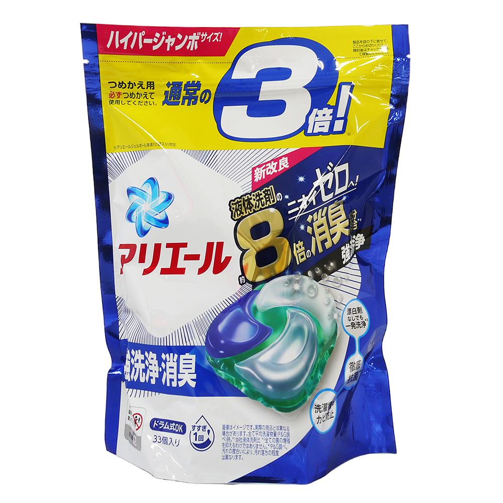 日本P&G Ariel 新款3.3倍洗衣膠球(33顆/袋)(藍)-4袋組