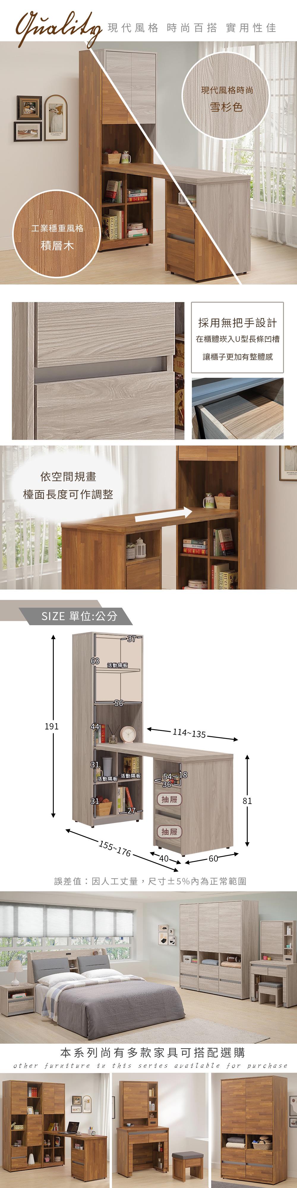 尺寸:寬 155~176 x 深 60 x 高 191 公分