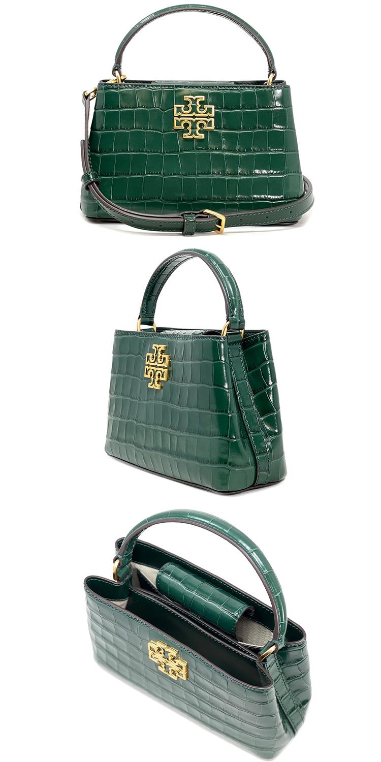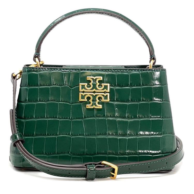 TORY BURCH 鱷魚紋皮革肩背包-祖母綠