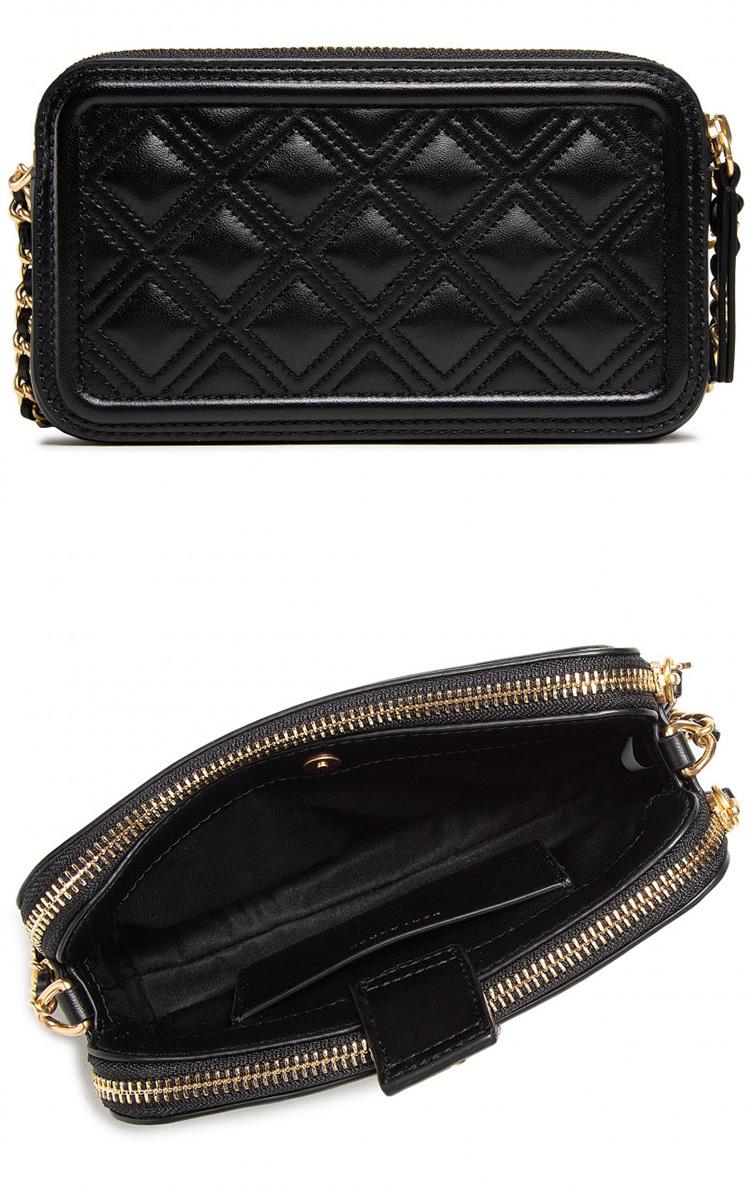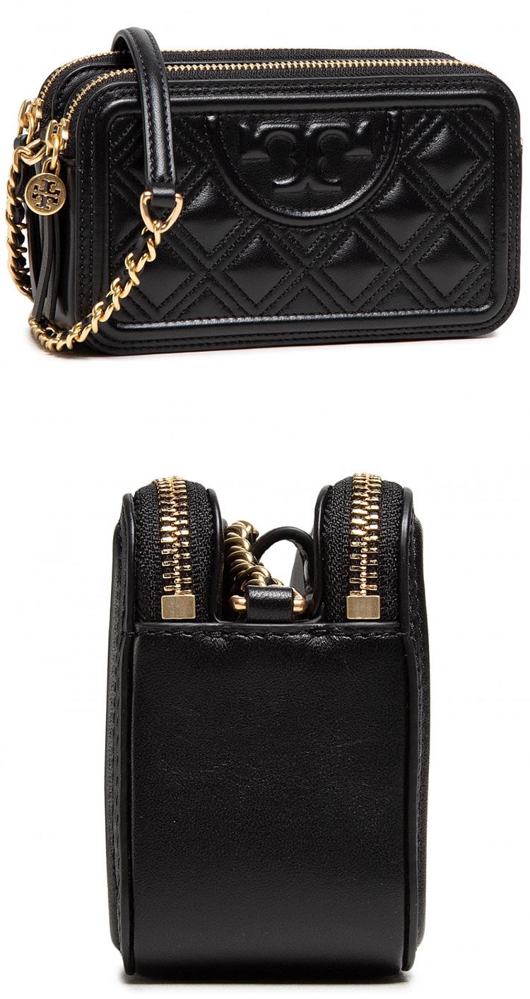 TORY BURCH 流蘇羊皮拉鍊雙層斜背包-黑色