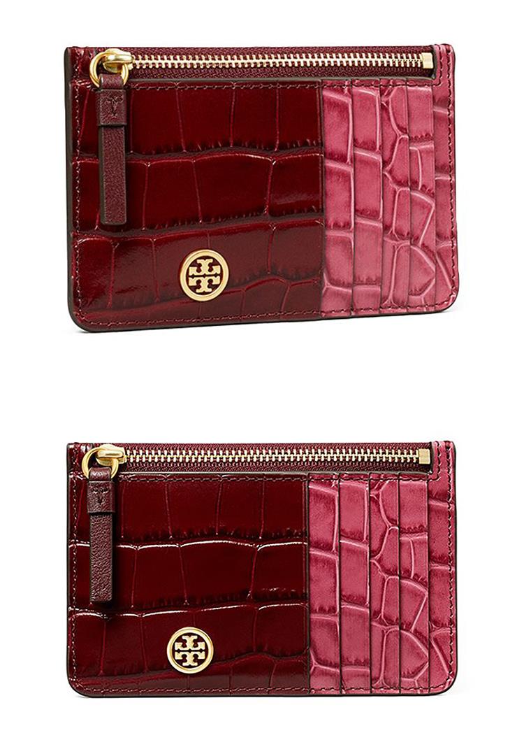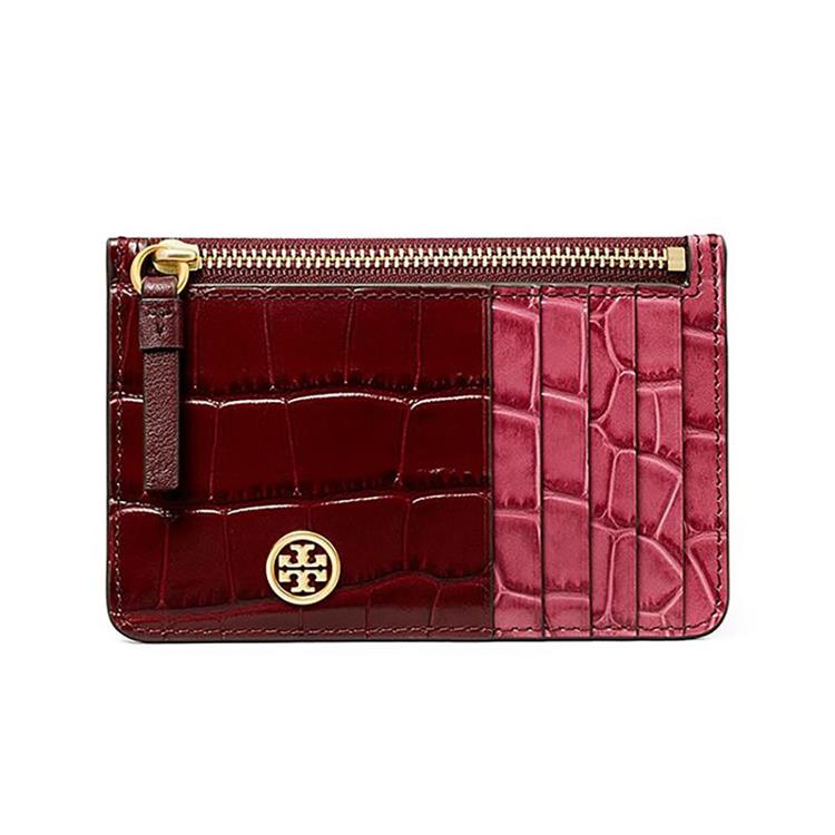 TORY BURCH 鱷魚紋皮革卡片零錢包-酒紅