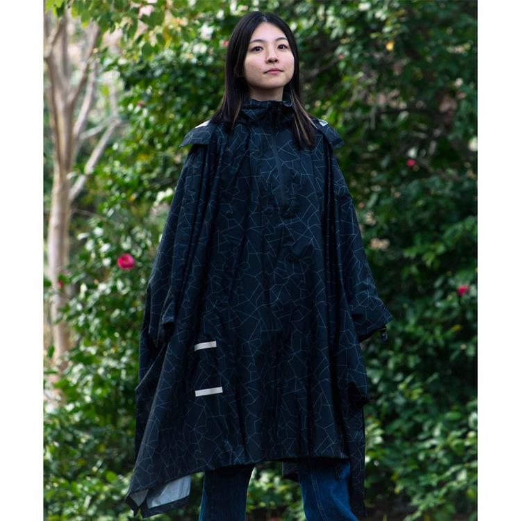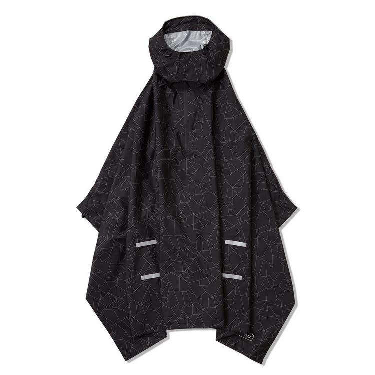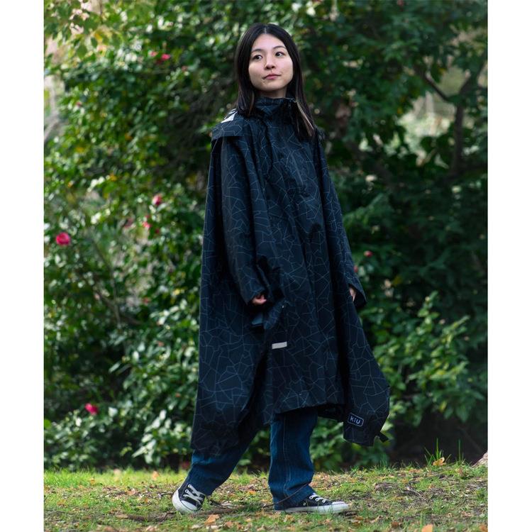 日本KIU 203-270 夜光裂紋-黑 機車/自行車雨衣斗篷 附收納袋(男女適用)
