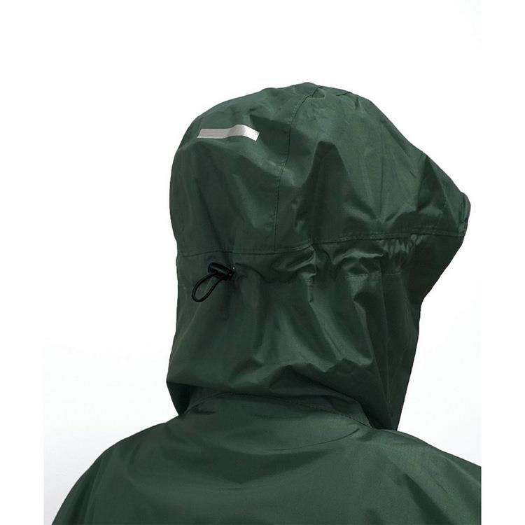 它具有防雨帽與遮蔽雨水的設計,可調節的帽部繩索以保護視線,還有手背覆蓋和拇指帶。