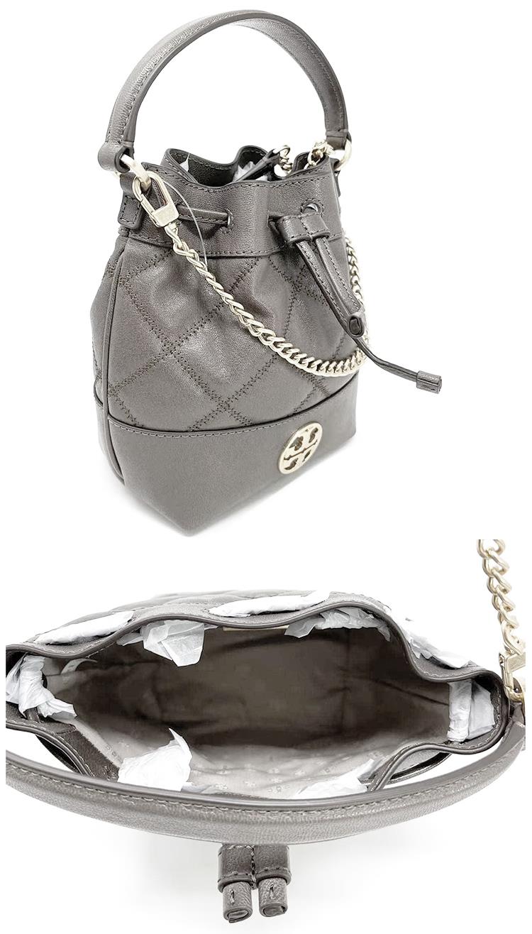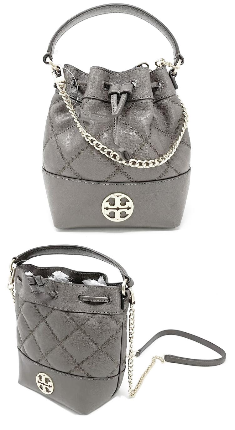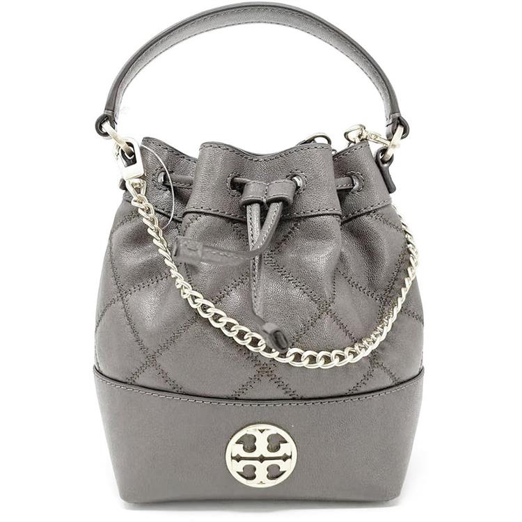 TORY BURCH 拼接皮革素面兩用水桶包-岩石灰