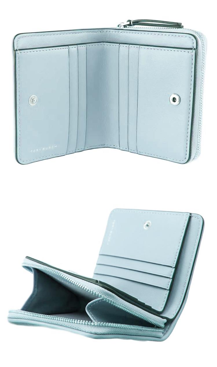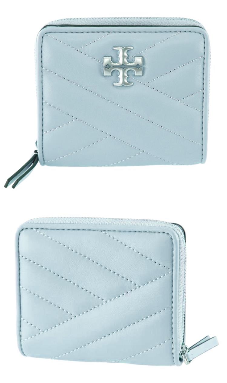 Tory burch 斜紋皮革零錢短夾-湖水藍