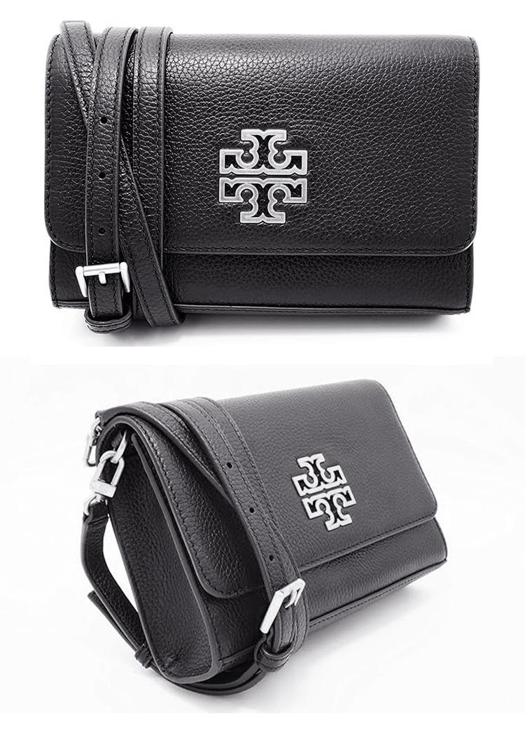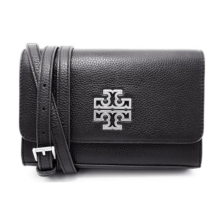 TORY BURCH 雙T LOGO翻蓋皮革斜背包-黑