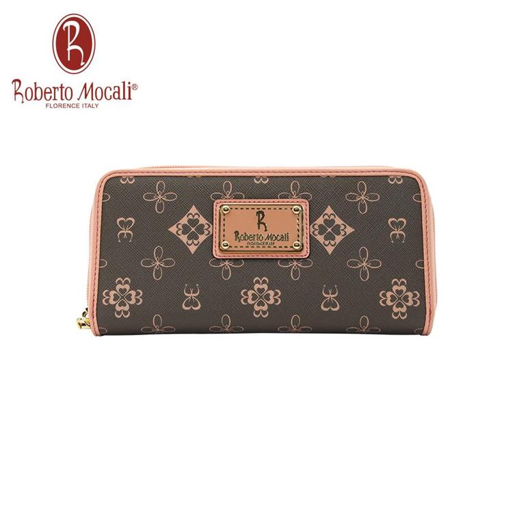 義大利《Roberto Mocali》典雅粉3鈔13卡單零錢格長夾RM-75203
