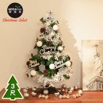 摩達客 台灣製 3尺/3呎(90cm)豪華型裝飾綠色聖誕樹/+全套飾品組不含燈(可選款)