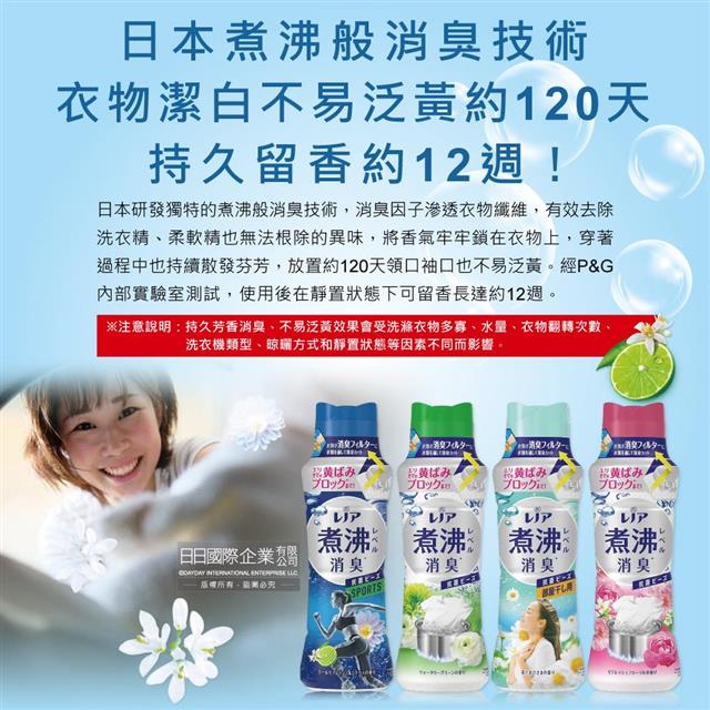 ●日本煮沸般消臭技術,衣物潔白不易泛黃約120天,持久留香約12週!