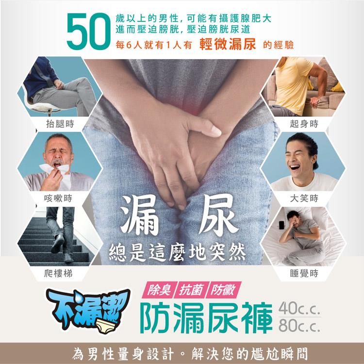 男性80c.c 不漏潔 防漏尿內褲 安心防漏 消臭抗菌防黴 防漏尿褲 輕度尿失禁使用