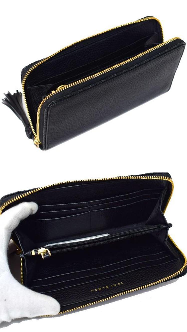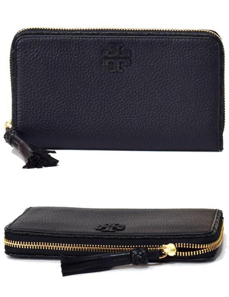TORY BURCH 編織飾邊皮革拉鍊長夾-黑