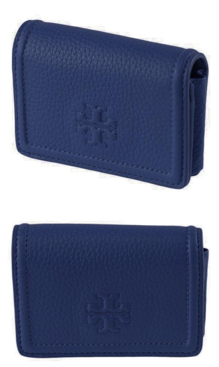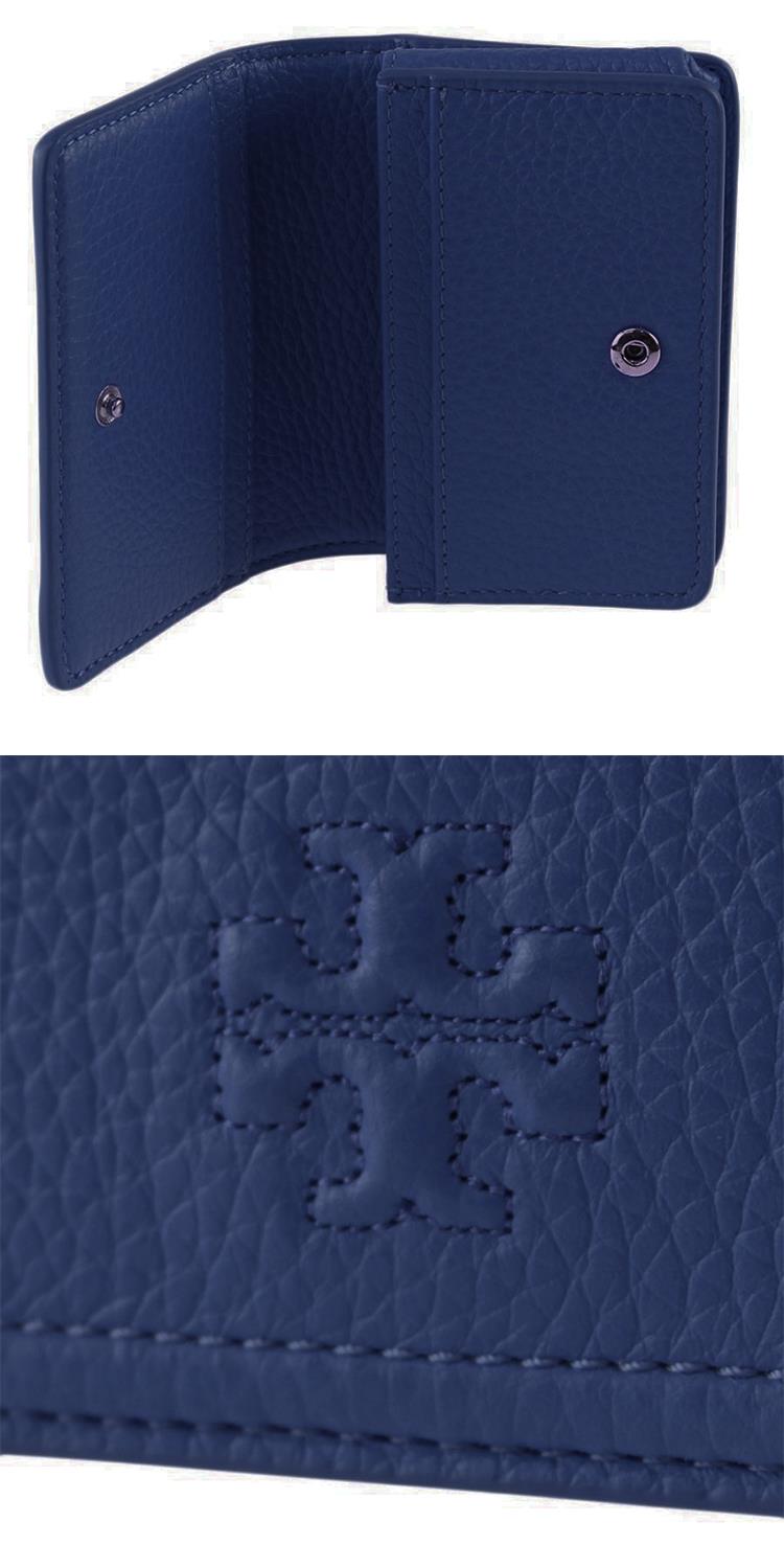Tory burch 雙T-LOGO素面皮革短夾-深藍