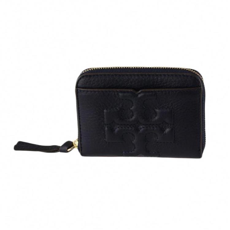 Tory Burch 壓印皮革拉鍊短夾-黑