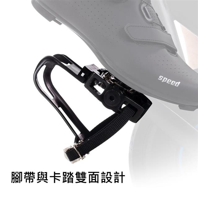 .雙面踏板設計,含狗嘴套腳帶與卡踏設計