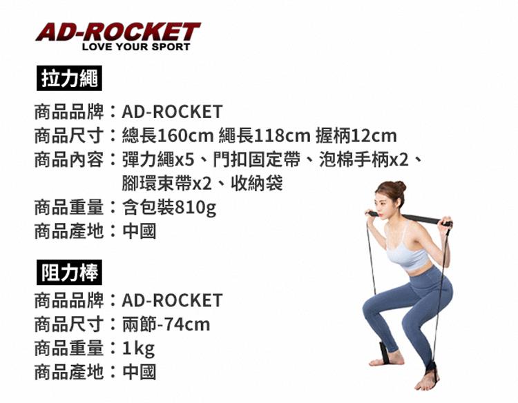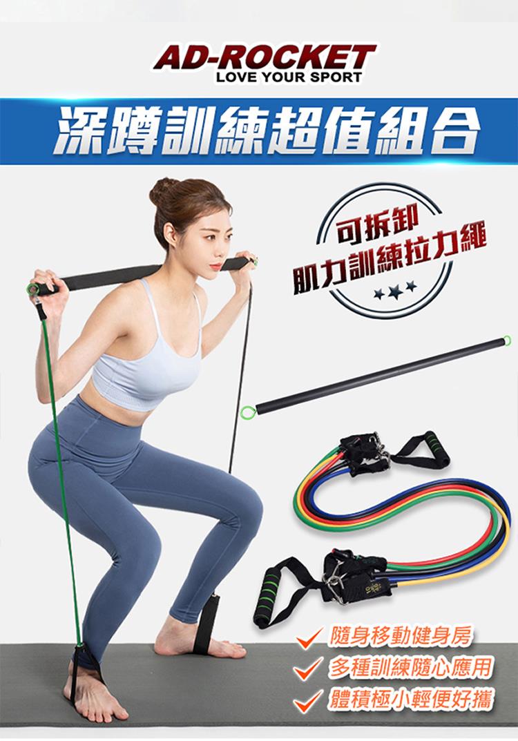【AD-ROCKET】深蹲訓練超值組合 150磅 兩節74cm/可拆卸肌力訓練拉力繩/阻力棒/深蹲