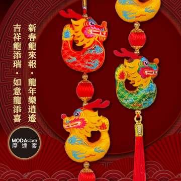 摩達客◉春節開運招財◉精緻刺繡三祥龍燈籠流蘇掛飾吊飾